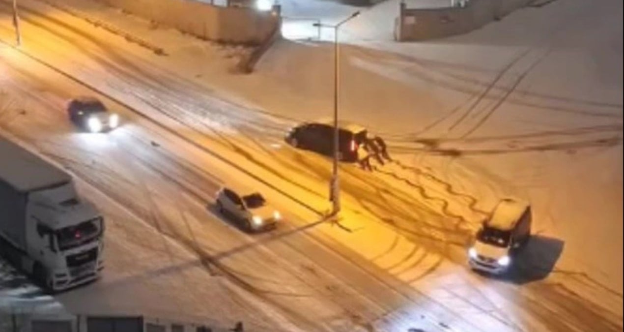 Otomobillerini kaygan zeminde hareket ettiremeyen sürücülerin araçlarını vatandaşlar bir süre itti.
